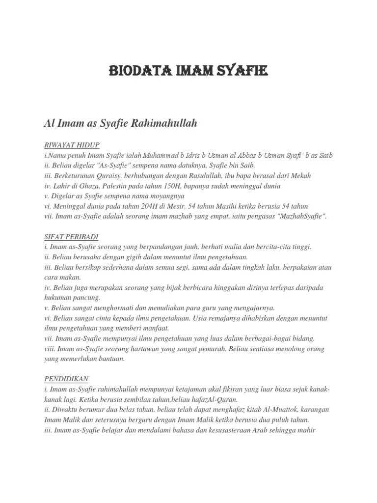 Imam al syafie by syahir aiman. Sifat peribadi imam as syafie. Doc imam syafie nur nazhan academia edu. Mostly by managing the symptoms. Sifat peribadi imam syafie sang hook.